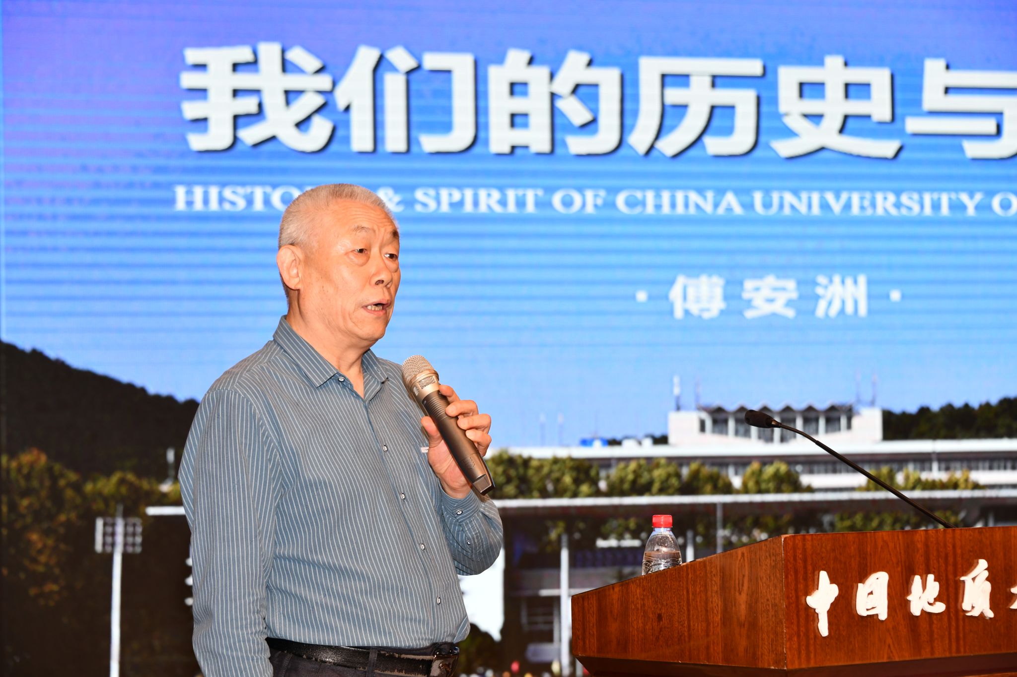 典礼结束后,举行了新生入学教育。傅安洲教授以“我们的历史与精神”为主题,详细讲述了公司创建、发展、搬迁、重建、振兴等各阶段曲折发展的历史,阐述了从一大批以院士和优秀员工为代表的地大人身上所体现出来的地大精神,希望同学们积极传承与发扬老一辈地大人爱国、求真、担当、奉献的精神,做一名优秀的地大学子。
