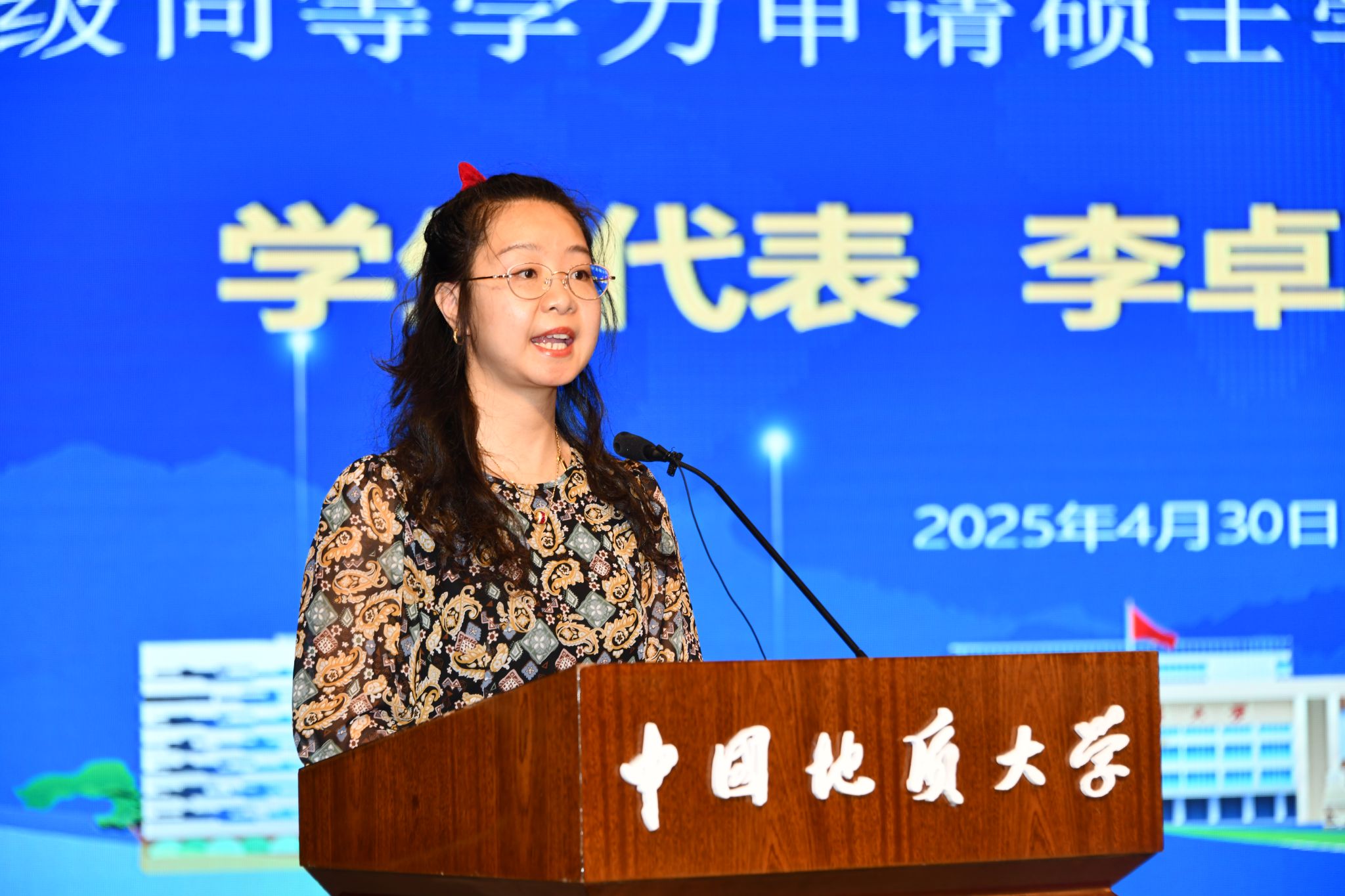新生代表、来自新疆维吾尔自治区地质局、地球科学公司李卓艺同学表示,同等学力硕士是在职人员的新起点,在新的学习研究中,将时刻谨记“艰苦朴素,求真务实”的校训精神,以饱满的热情和坚定的信念,投入到学习和研究中去,为实现中华民族伟大复兴的中国梦贡献自己的力量。