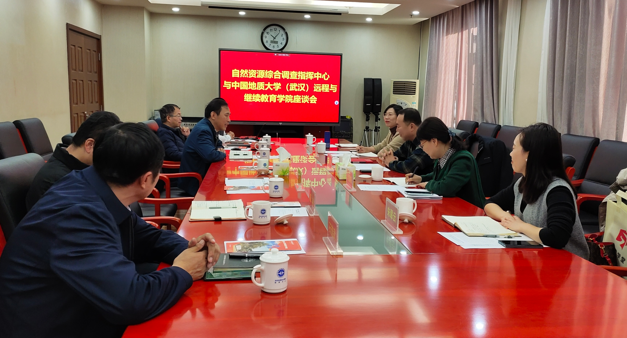 11月16日,隋明成一行赴中国地质调查局自然资源综合调查指挥中心,就深化双方合作进行交流。指挥中心纪委书记沈运华、副总经济师黄育群及相关部门负责同志参加座谈。隋明成汇报了中国地质调查局自然资源综合调查指挥中心150名学员来校脱产培训工作开展情况及成效,黄育群介绍了指挥中心转制改革及建设发展情况,并就指挥中心人才队伍建设工作做了重点介绍。