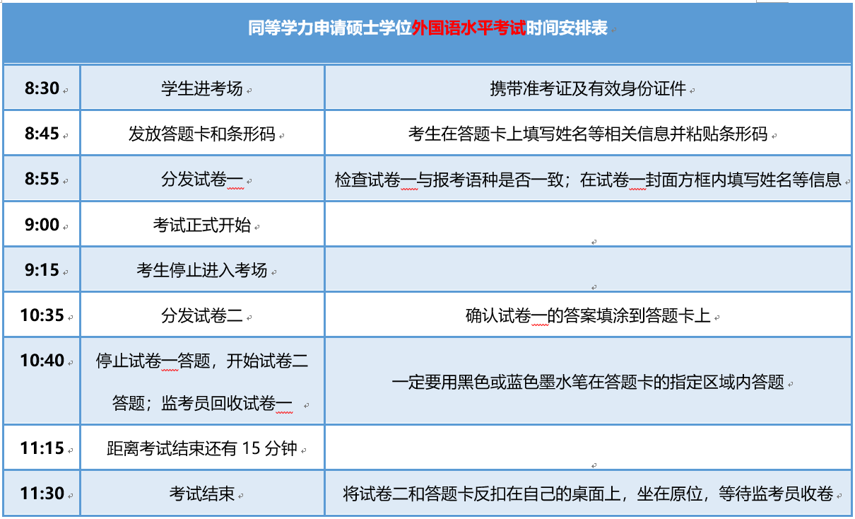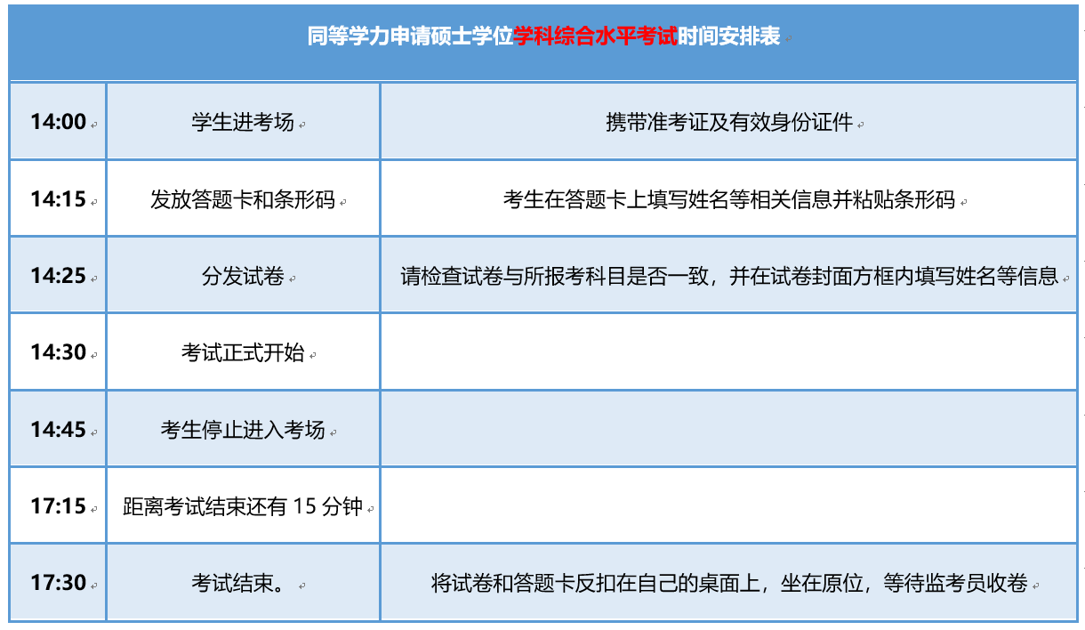 六、同等学力全国统考考试具体时间安排表
