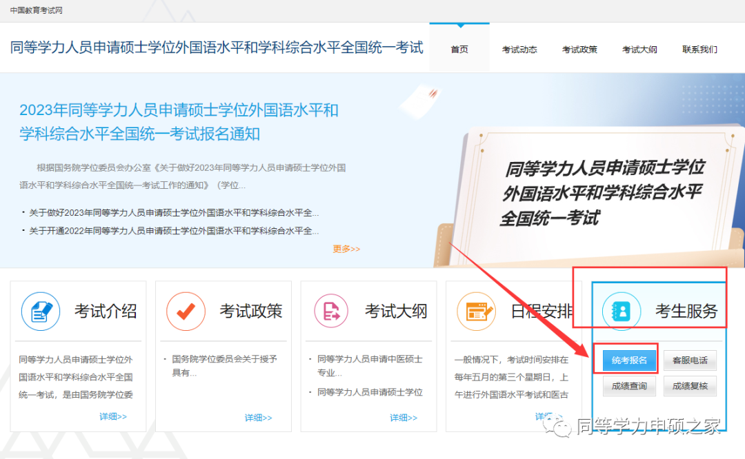 第1步:点击“考生服务”中的“统考报名”,进行登录操作