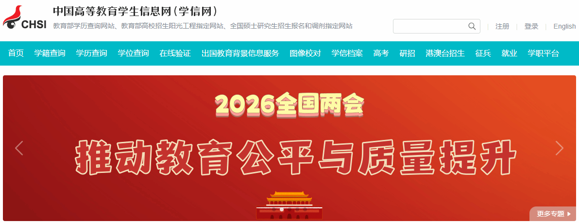 1、登录学信网:https://www.chsi.com.cn/,点击“学籍查询”;