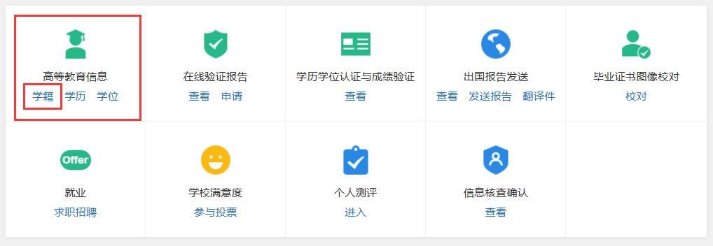 5、点击“高等教育信息”—学籍模块;