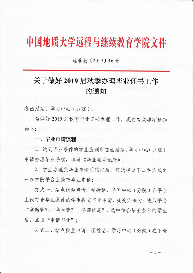 关于做好2019届秋季办理毕业证书工作的通知