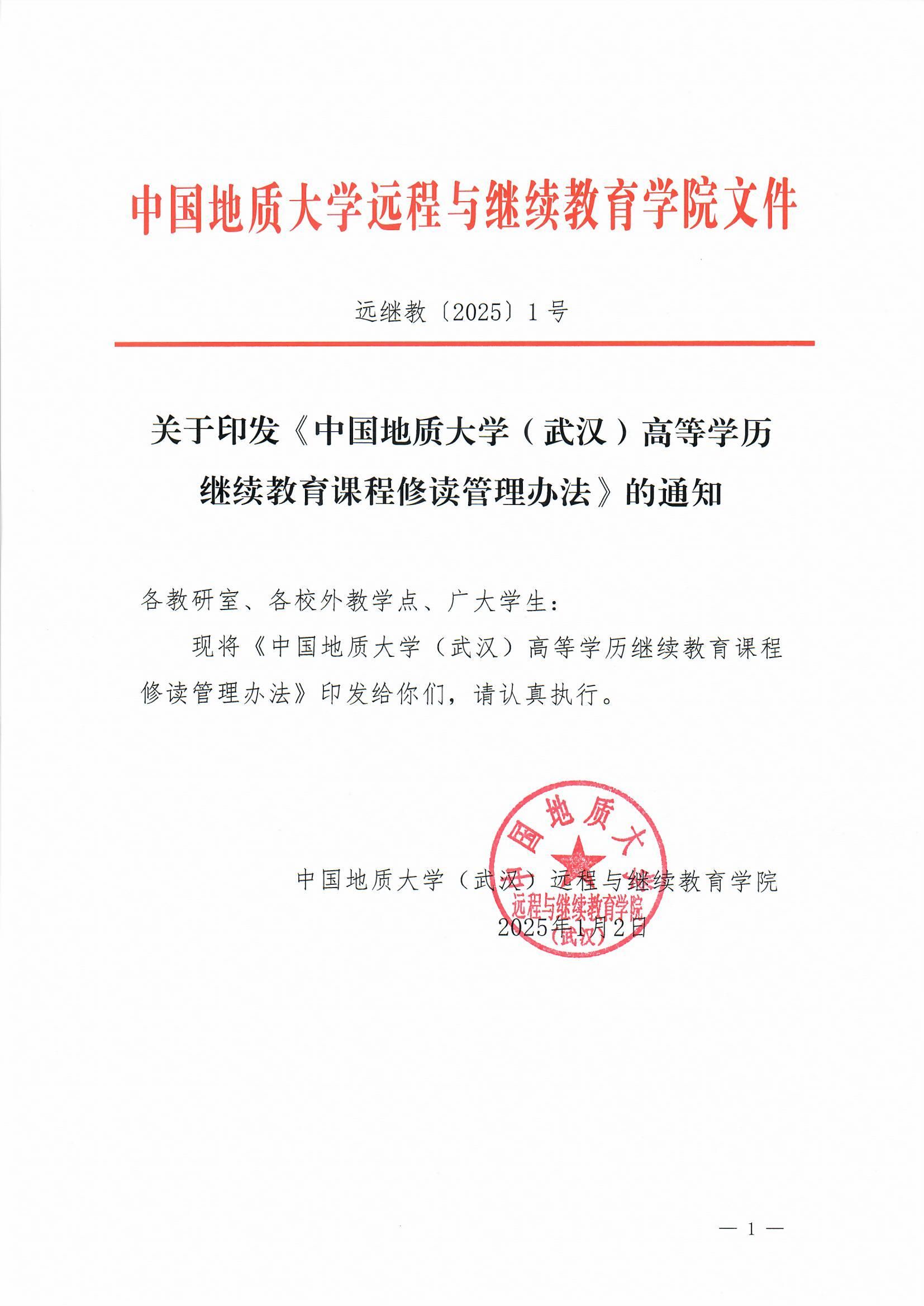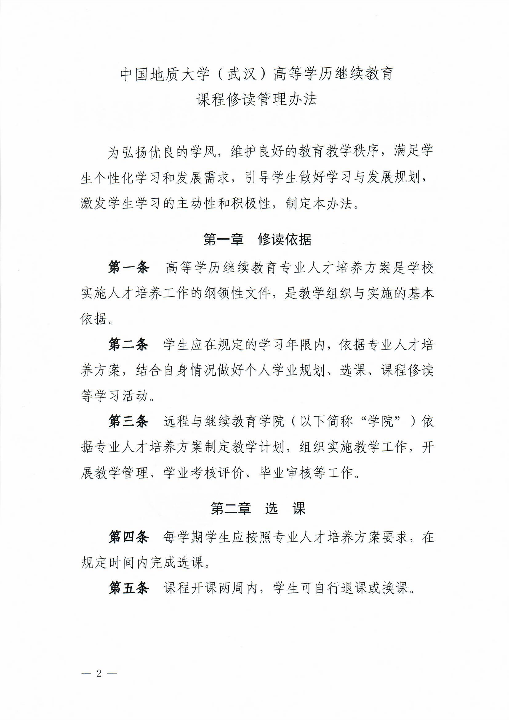 关于印发《谈球吧官方网站(武汉)高等学历继续教育课程修读管理办法》的通知