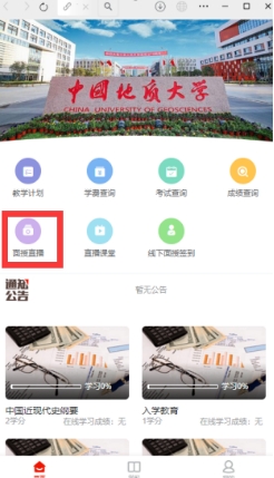 (2)进入移动学习平台界面后,点击“面授直播”版块,可在移动端进行面授同步直播的学习。