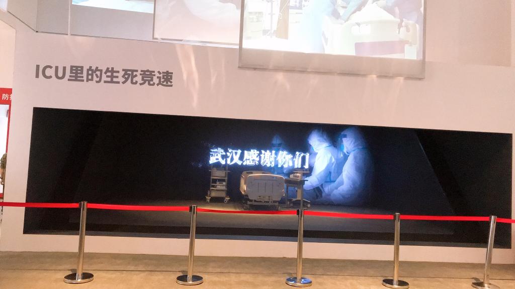 此次展览包括序篇、尾厅和“运筹帷幄、掌舵领航” “生死阻击、艰苦卓绝” “英雄城市、英雄人民” “八方支援、共克时艰” “疫后重振、浴火重生” “团结协作、命运与共”等6个主题内容展区,共21个单元。活动中,大家纷纷被展区内重现的各种抗疫历程所吸引,不时驻足观看。展区内再现了各级党员干部群众,特别是广大医务工作者在疫情防控阻击战中不惧艰险、勇于奉献的感人故事、温情瞬间;颂扬了奋斗在抗“疫”和复工复产一线的平凡英雄在疫情防控中冲锋在前、无私奉献、英勇战斗的光辉形象,这一幕幕的情景再现,引起了同志们的强烈共鸣。一台全息投影的ICU病房,通过虚拟投影技术,再现了白衣战士生死救援的时刻,吸引住了党员们的目光。病房里的医护人员,与病魔赛跑,尽其所能挽救更多的生命。他们用医者仁心托举起生命的方舟,让更多患者看到了生命的希望。展览还实景还原了火雷神山医院建设现场。反光背心、安全帽、对讲机,这些援建过程中的实物都被收录到展馆内,一下子把大家带回到热火朝天、争分夺秒的施工现场。建设者们用10天时间建成火雷神山,完成了建筑史上的一个奇迹,也创造了中国速度,展现了中国力量。火雷神山背后,是许许多多平凡英雄的身影。“英雄不是生而勇敢,而是在重大关头选择坚强和无畏”。这是一场每个武汉人都切身参与的战役,展览中随处可见你我的身影。